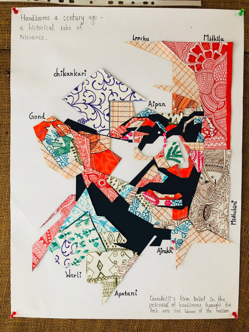 Taking this idea forward, the students of IDT prepared a picture of Gandhiji by connecting various handlooms of India.